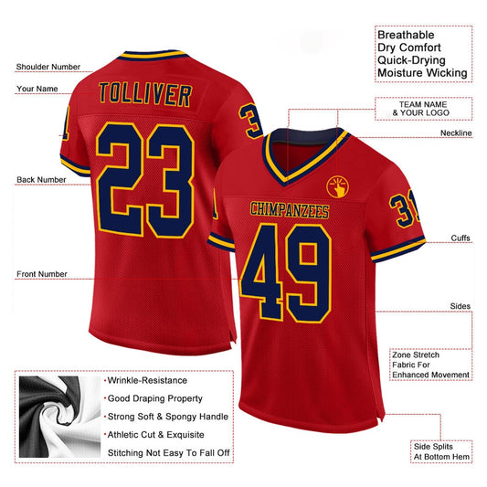 Custom Red Navy Old Gold Mesh Authentic Football Jersey, Team Jerseys Football, Custom Football Jersey