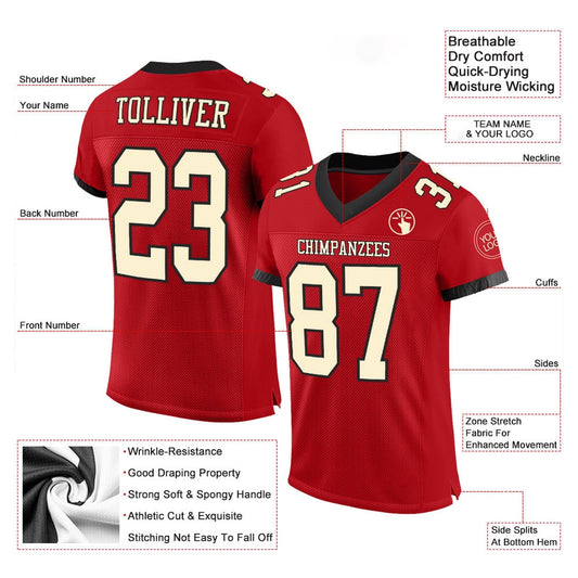 Custom Red Cream Black Mesh Authentic Football Jersey, Team Jerseys Football, Custom Football Jersey