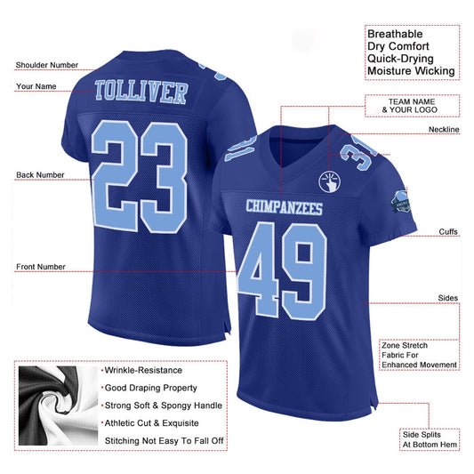 Custom Royal Light Blue White Mesh Authentic Football Jersey, Team Jerseys Football, Custom Football Jersey