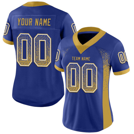 Custom Royal Gold Navy Mesh Drift Fashion Football Jersey, Team Jerseys Football, Custom Football Jersey