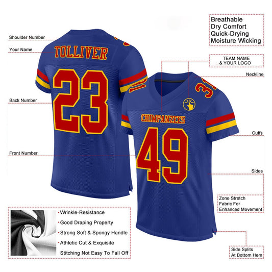 Custom Royal Red Yellow Mesh Authentic Football Jersey, Team Jerseys Football, Custom Football Jersey