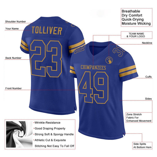 Custom Royal Royal Old Gold Mesh Authentic Football Jersey, Team Jerseys Football, Custom Football Jersey
