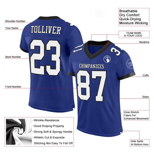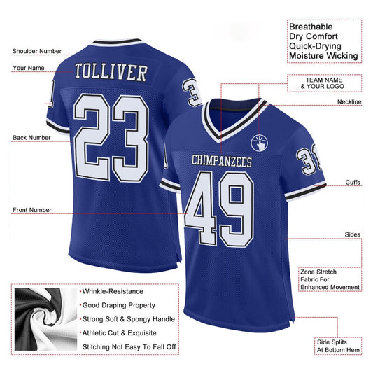 Custom Royal White Black Mesh Authentic Throwback Football Jersey, Team Jerseys Football, Custom Football Jersey