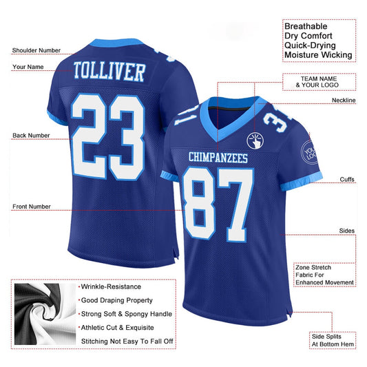 Custom Royal White Mesh Authentic Football Jersey, Team Jerseys Football, Custom Football Jersey