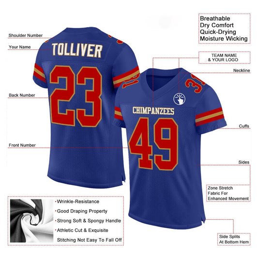 Custom Royal Red Old Gold Mesh Authentic Football Jersey, Team Jerseys Football, Custom Football Jersey