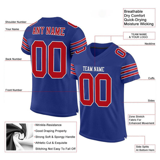 Custom Royal Royal Red Mesh Authentic Football Jersey, Team Jerseys Football, Custom Football Jersey