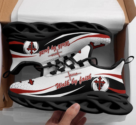 Christian Best Running Shoes, Jesus Walk By Faith Running Sneakers Max Soul Shoes For Men And Women, Jesus Fashion Shoes