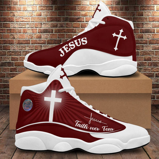 Faith Over Fear Jesus Jd13 Shoes For Man And Women Red Design, Christian Basketball Shoes, Gift For Christian, God Shoes