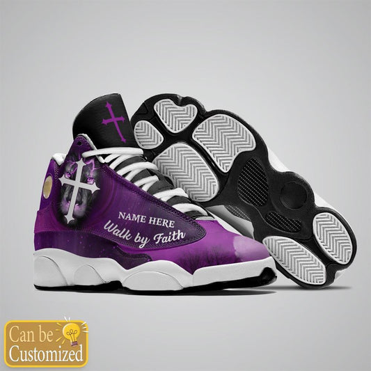 Purple Walk By Faith Lion Jesus Custom Name Jd13 Shoes For Man And Women, Christian Basketball Shoes, Gifts For Christian, God Shoes