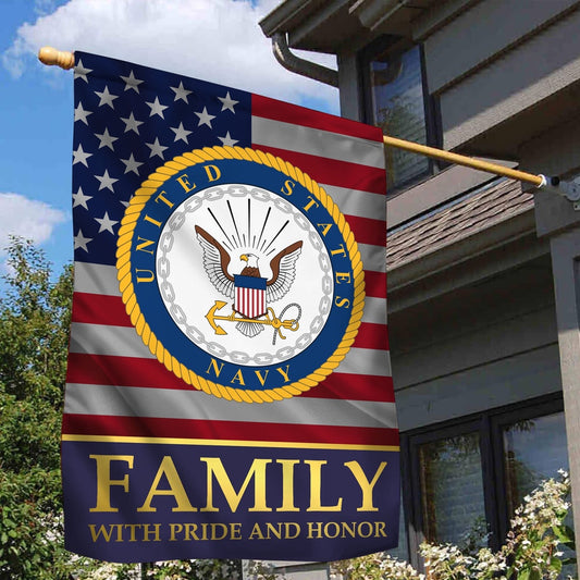 US Navy Veteran Flag, Us Navy Garden Flag, Navy Family With Pride And Honor, US Navy Garden Flag, US Veteran Flag, Veteran Day Gift