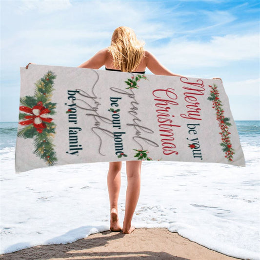 Christmas Merry Be Your Christmas Peaceful Be Your Home Joyful Be Your Family Beach Towel - Bible Verse Beach Towel