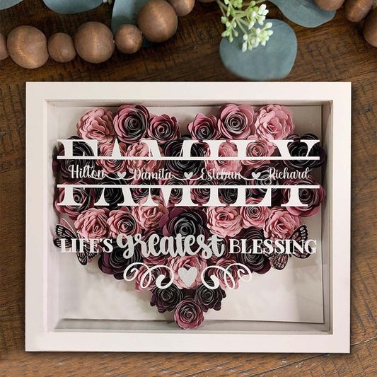 Mother's Day Flower Shadow Box, Personalized Family Pink Flower Shadow Box With Name For Mother's Day Birthday