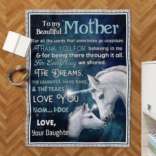 Mother's Day Blanket For Mom Mother Thanks For Believing In Me Horse Blanket From Daughter, Birthday Gift