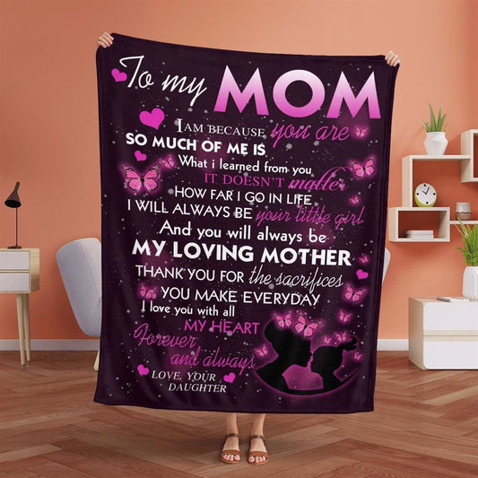 Mother's Day Blanket For Mom You Will Always Be My Loving Mother Blanket Pink Butterfly, Birthday Gift