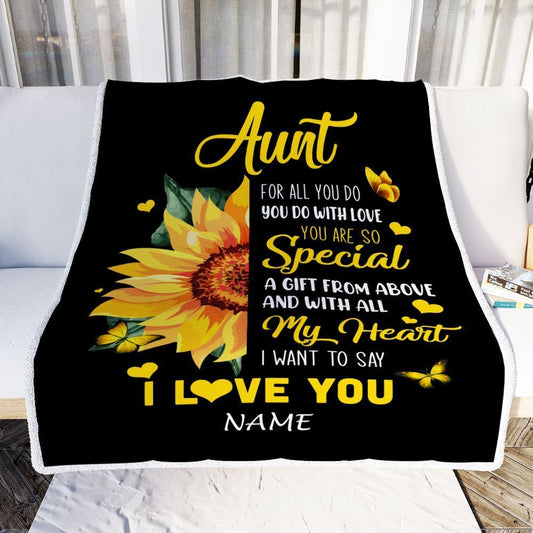 Personalized To My Aunt Blanket From Niece Nephew I Want To Say I Love You Sunfower, Mother's Day Blanket, Mothers Day Birthday Gifts For Mom