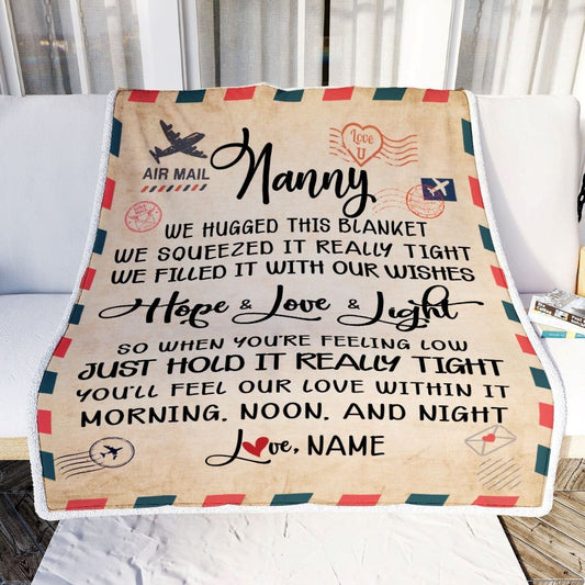 Personalized Nonna Blanket From Grandkids I Love You Hugs Air Mail Letter, Mother's Day Blanket, Mothers Day Birthday Gifts For Mom