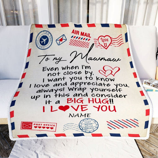 Personalized Mawmaw Blanket From Grandkids I Love You Hugs Air Mail Letter, Mother's Day Blanket, Mothers Day Birthday Gifts For Mom