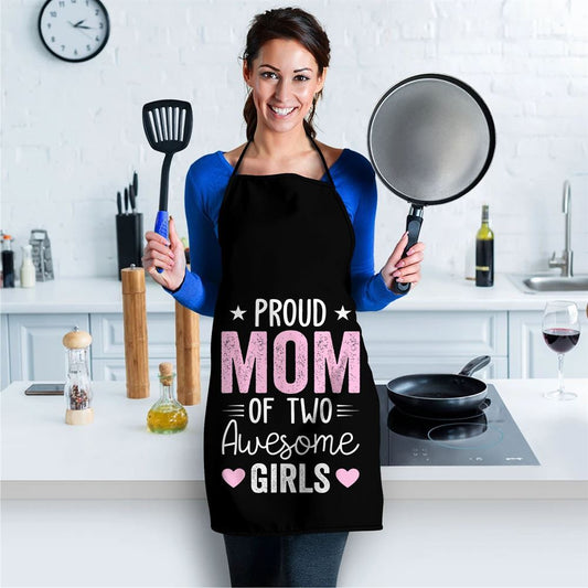 Mother's Day Apron, Women Mom Of 2 Girls Two Daughters Mothers Day Apron, Mom Gift, Mother's Day Gift, Funny Apron For Women