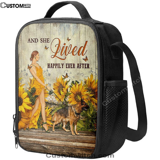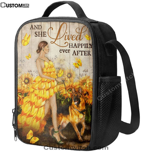 And She Lived Happily Ever After Beautiful Girl German Shepherd Lunch Bag, Christian Lunch Bag For School, Picnic, Religious Lunch Bag