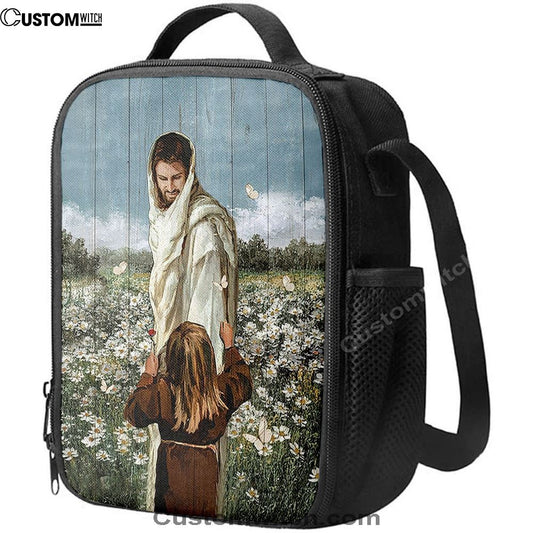 Happy Jesus Little Girl Daisy Field White Butterfly Lunch Bag, Christian Lunch Bag, Religious Lunch Box For School, Picnic