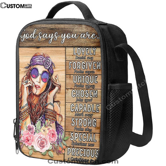 God Says You Are Boho Hippie Lunch Bag, Encouragement Gifts For Women Girls Teens Bedroom, Christian Lunch Bag, Religious Lunch Box For School, Picnic