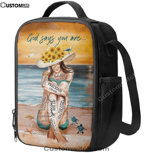 God Says You Are Lunch Bag Beautiful Girl On The Beach Lunch Bag, Christian Lunch Bag, Religious Lunch Box For School, Picnic