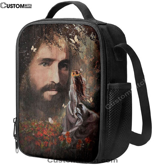 Jesus Hug Girl In Flower Field Lunch Bag, Christian Lunch Box For School, Picnic