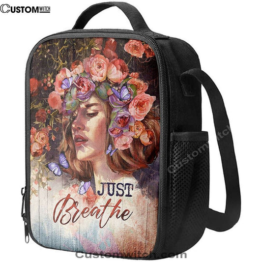Just Breathe Purple Butterfly Girl Lunch Bag, Christian Lunch Box For School, Picnic