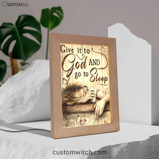 Give It To God And Go To Sleep Butterlies Girl Frame Lamp Art - Christian Art Decor - Religious Gifts Night Light