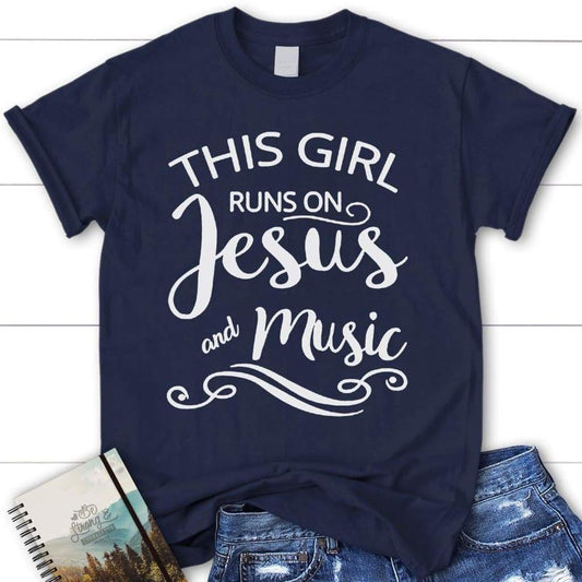 This Girl Runs On Jesus And Music Womens Christian T Shirt, Jesus Shirts, Blessed T Shirt, Bible T shirt, T shirt Women