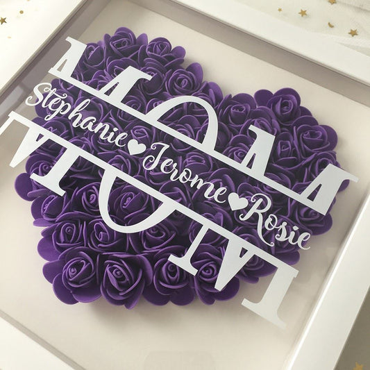 Mother's Day Flower Shadow Box, Personalized Mom DarkViolet Heart Flower Shadow Box With Name For Mother's Day
