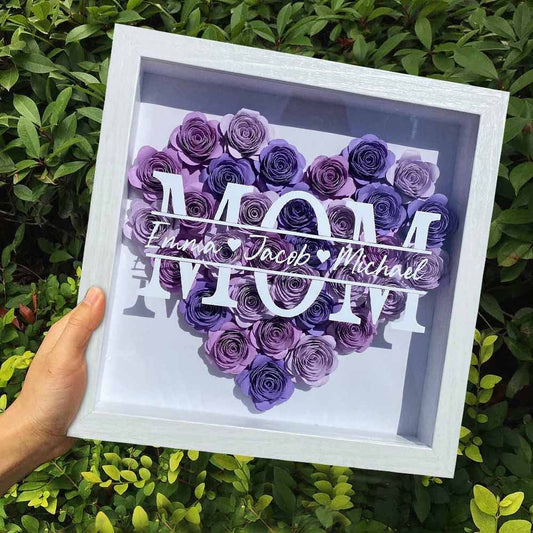 Mother's Day Flower Shadow Box, Personalized Mom Heart Flower Shadow Box With Name For Mother's Day