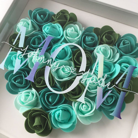 Mother's Day Flower Shadow Box, Personalized Mom Green Mix Heart Flower Shadow Box With Name For Mother's Day