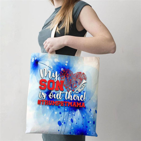 My Son Is Out There Trumpet Mom Of A Trumpet Player Mom Tote Bag, Women Tote Bag, Canvas Tote Bag, Printed Tote Bag