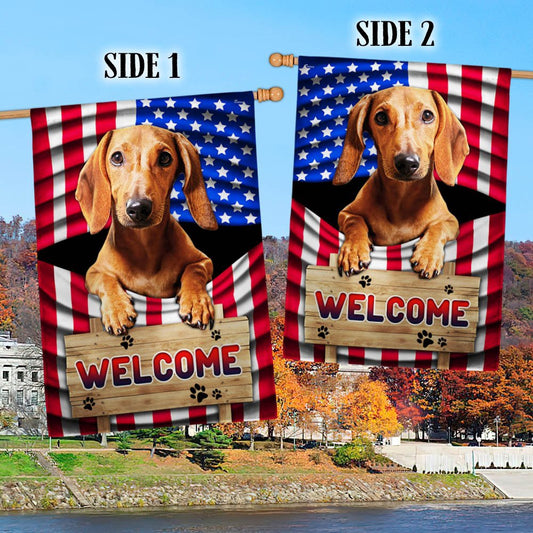 Dog Garden Flags, Red Dachshund Dog Welcome American Flag, Dog Flags For House, Dog Owner Gift