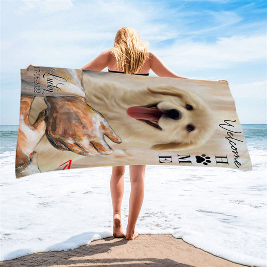 Welcome Home Jesus With Dog Beach Towel - Dog In The Arms of Jesus Beach Towel - Dog Loss Gift - Customized Dog Photos