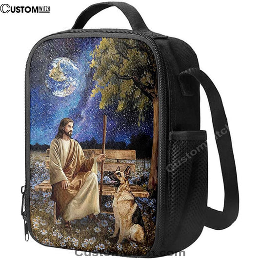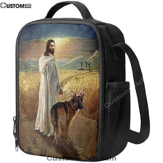 Jesus And German Shepherd Dog Walking Rice Field Lunch Bag - Gift For Dog Lover, Christian Lunch Box For School, Picnic