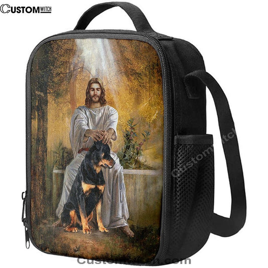 Jesus And Rottweiler Dog Lunch Bag, Christian Lunch Box For School, Picnic