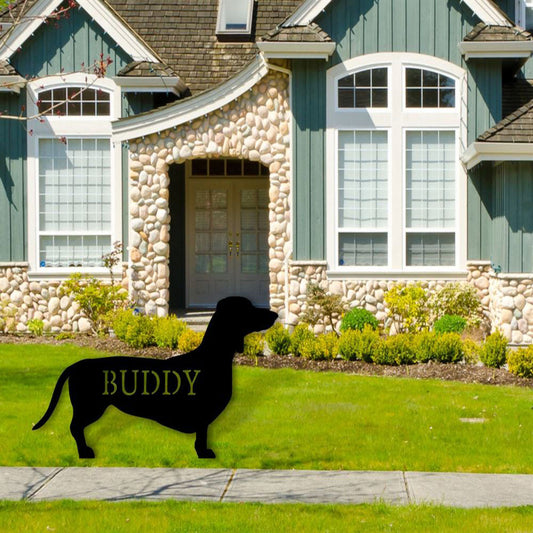 Custom Metal Sign, Dachshund Name Metal Sign, Anniversary Gift, Dog House Sign, Dog Wall Art, Outdoor Sign, Home Decor Sign