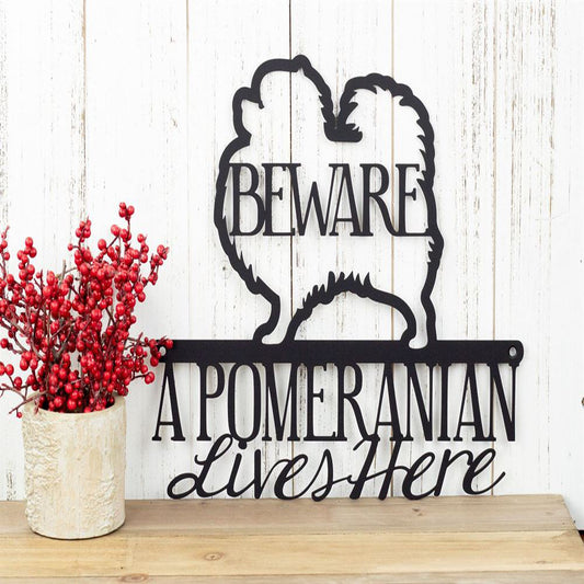 Custom Metal Sign, Pomeranian Lives Here Metal Sign, Anniversary Gift, Dog House Sign, Dog Wall Art, Outdoor Sign, Home Decor Sign