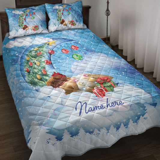 Corgi Quilt Set, Corgi Sleeping On The Moon Snowflakemas Tree Dog Quilt Blanket
