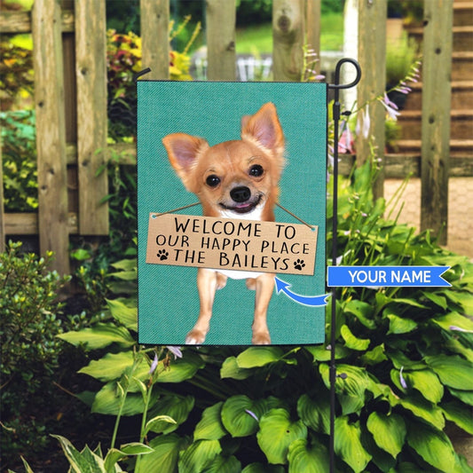Personalized Dog Flags, Chihuahua-Welcome To Our Happy Place Flag, Custom Dog Garden Flags, Dog Flags Outdoor, Garden Flags Dogs, Dog House Flags