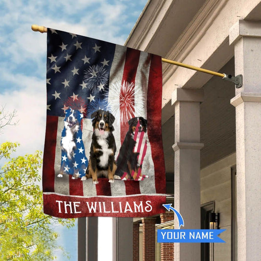 Personalized Dog Flags, Bernese Mountain Dog God Bless America Flag, Garden Flags Dogs, Dog House Flags