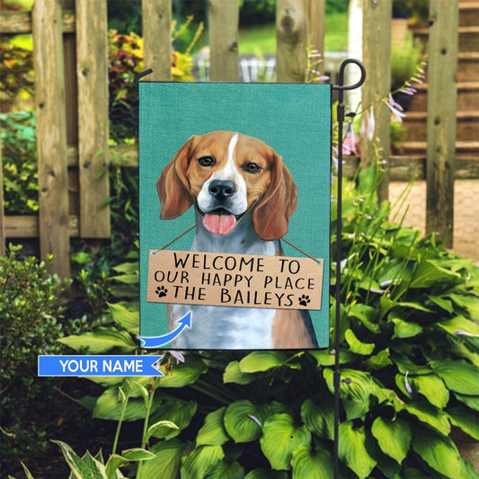 Personalized Dog Flags, Beagle-Welcome To Our Happy Place Flag, Dog Flag For House, Garden Flags Dogs, Dog House Flags