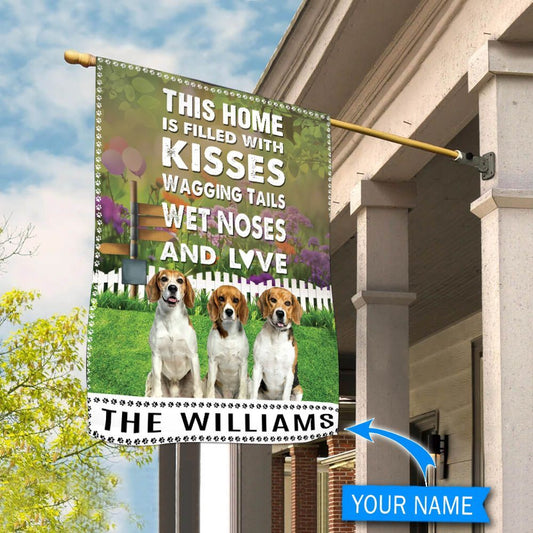 Personalized Dog Flags, Beagle This Home Is Filled With Kisses Flag, Garden Flags Dogs, Dog House Flags