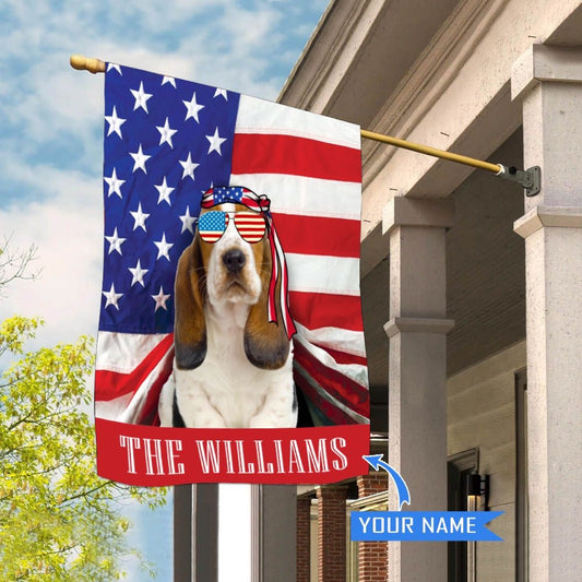 Personalized Dog Flags, Basset Hound God Bless America Flag, Garden Flags Dogs, Dog House Flags
