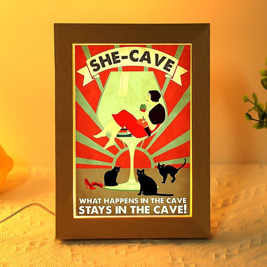 Wine Cat What Happens In The Cave Stays In The Cave Frame Lamp, Mother's Day Night Light, Best Mom Ever, Gift For Mom