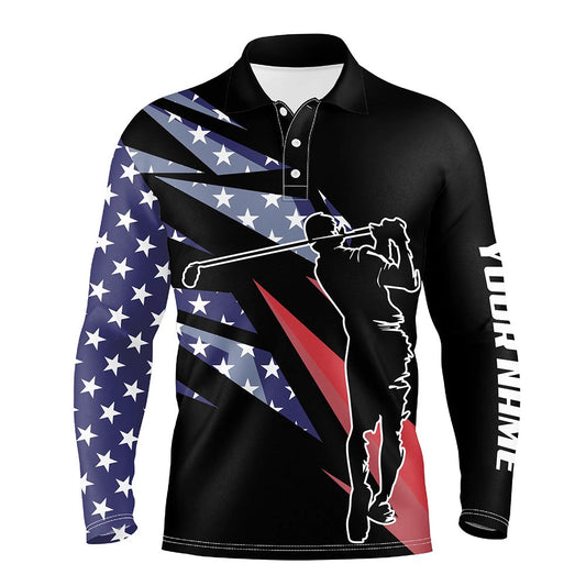 Golf Polo Shirts, American Flag Black Mens Golf Polo Shirts Custom Team Golf Shirt For Men, Gift For Golf Lovers, Custom Golf Shirts