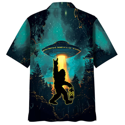 Alien Bigfoot Night Hawaiian Shirt, Funny Hawaiian Shirt, Cool Hawaiian Shirts, Best Hawaiian Shirts