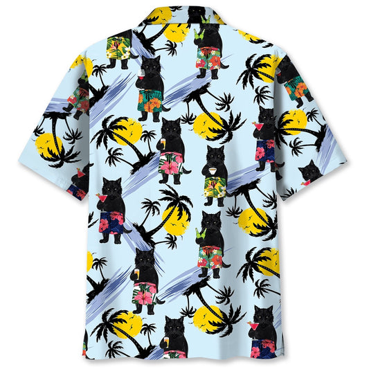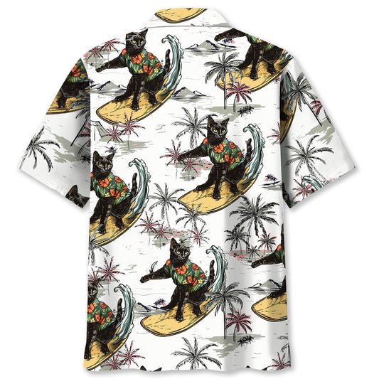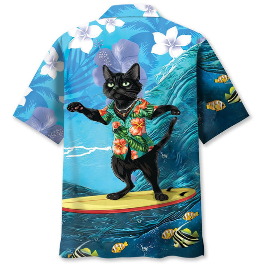 Funny Black Cat Surfing Hawaiian Shirt, Cat Hawaiian Shirt, Funny Hawaiian Shirts